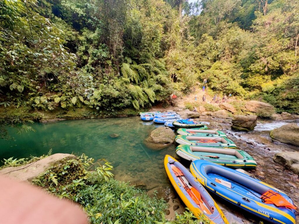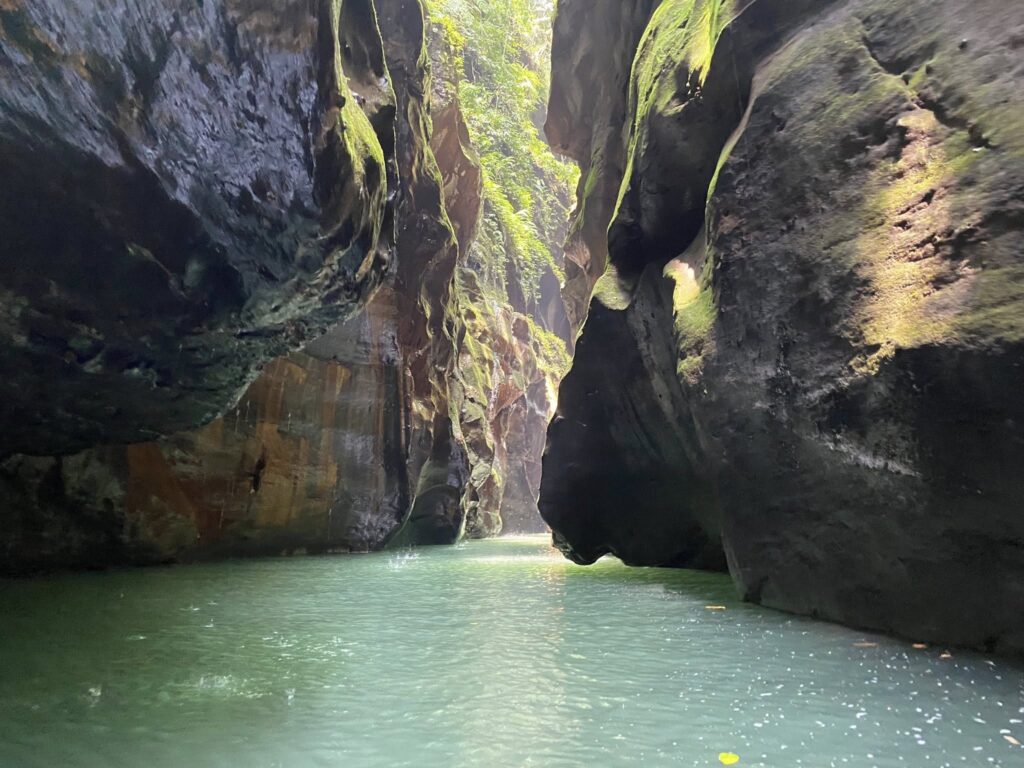 Towering canyon walls rise on either side, as if the river has been protected for centuries. The soundscape changes here. Even voices feel unnecessary.
