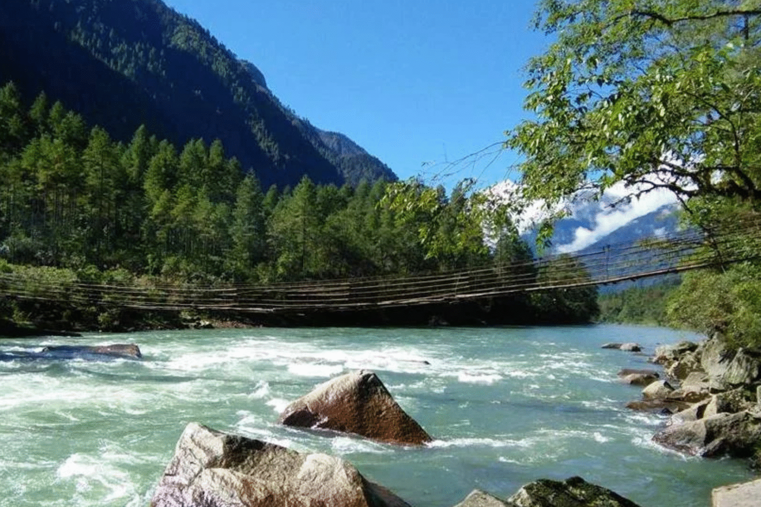 Ascend through the misty Mayudia Pass, with stunning snow views and lush forests. Visit Hunli village and enjoy the hanging bridge and caves en route.